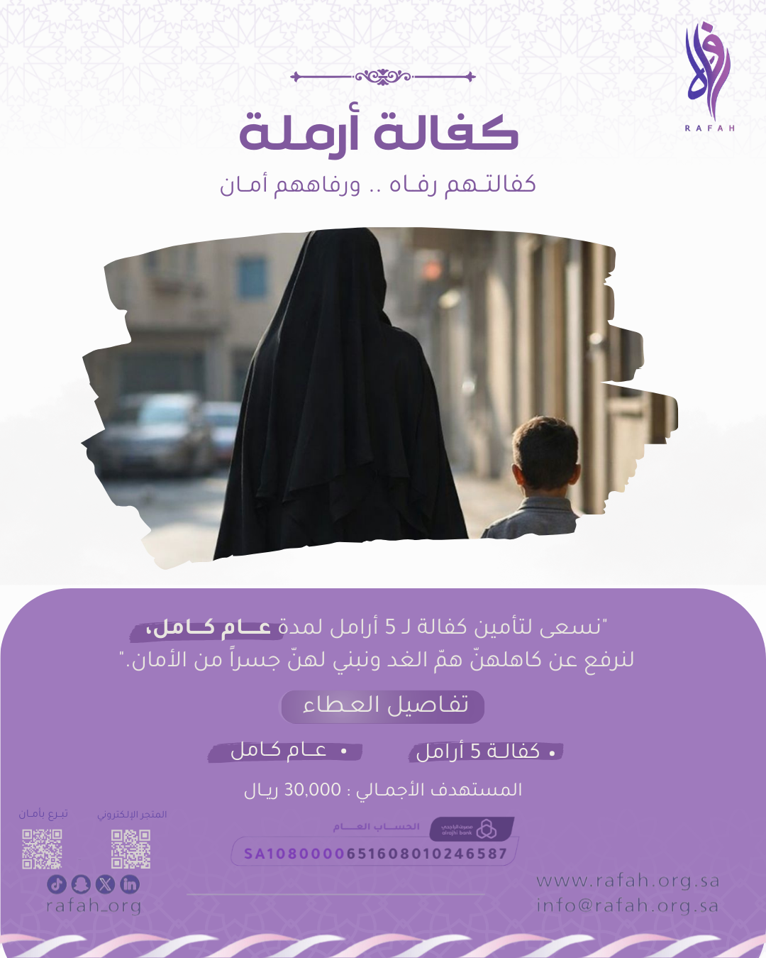 المستهدف الإجمالي: 30,000 ريال (لتأمين 5 أرامل ).